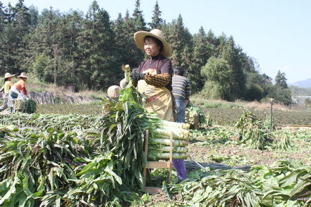 大田新聞網(wǎng)—23日訊(林起煌 林 丹)11月22日,桃源鎮(zhèn)前厝村菜農(nóng)張春蓮把收獲的萵苣整理裝筐。
