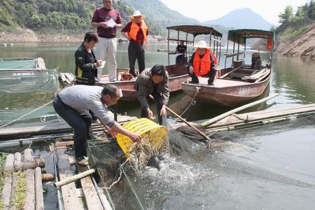 3月29日,湖美鄉(xiāng)高材村村民劉建橋在政府干部的監(jiān)督下,把網(wǎng)箱里的1500多公斤的魚苗回售給漁業(yè)公司,至此,他家所養(yǎng)殖的11個網(wǎng)箱全部完成了清理工作。街面水庫湖美庫區(qū)自3月1日開展網(wǎng)箱及相關(guān)設(shè)施清理整治工作以來,已清理各類網(wǎng)箱2200多個,清理魚苗39萬公斤,清理網(wǎng)箱9.7萬平方米,完成任務(wù)數(shù)47%,還剩下2000多箱將在5月底清理完畢。