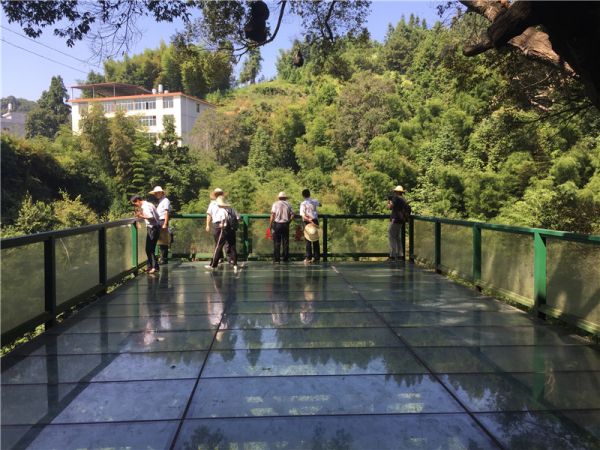瑤臺 隨后,采訪團一行來到岱山公園,穿過紫云橋,沿石階而下,經過“美女紡車”后,采訪團一行來到了情人橋與愛情天梯景點處,楊道成介紹說:“情人橋由一棵碩大雜木劈成兩半建成,牽著愛人的手行走于上,再一起登上愛情天梯,寓意執子之手,與子偕老。”通過情人橋,采訪團經過蜿蜒的山路,來到瑤臺,瑤臺是三明市第一座玻璃觀景臺。