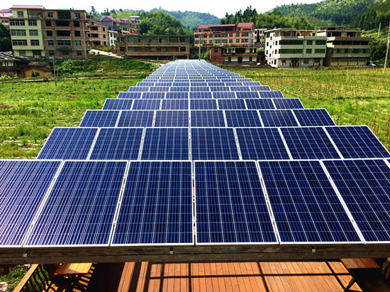 源頭有了關鍵保證,接下來就是解決管理的問題。為了推進“河長制”的長效落實、責任到位,梓溪村對8.1公里的河段又進一步劃分成5段,每個小河段由村兩委中選出的“河長”和民間“河長”共同負責維護,同時,通過“河長易信群”進行互相“曬河”,實現了管河治河的實時全覆蓋,形成了“共同監督、共同維護”的護河氛圍。分層細化、干群共管,讓梓溪也享受到了全方位的貼心呵護。 河水綠了,梓溪重現往日的清澈流暢。那么,如何讓河岸真正美起來,是實現梓溪“河長治”的關鍵一步。 眼前的這條光伏長廊建于2016年,是當地村民傍晚乘涼散步的好去處,此外,每年還能為當地貧困戶帶去一筆不錯的收入。為了解決“三無”貧困戶的生存問題,大田縣在各鄉(鎮)成立起扶貧公司,率先在全省實施光伏產業扶貧,幫助貧困戶“借光”脫貧。在發展光伏脫貧的同時,梓溪村同步探索“光伏扶貧+河岸經濟”的發展模式,通過資源整合,以發展“河岸經濟”反哺育河,從而實現梓溪的“河長治”。如今,在梓溪的兩岸,“河岸經濟”初具規模,一面發展著特色農業,種植姑娘果、獼猴桃等時令水果,可供游人觀賞采摘;一面是200畝的水田,大部分用來種植當地的紅米,通過電商、合作社等形式,對外暢銷。“光伏扶貧+河岸經濟”,原本看似毫不搭邊的組合,不僅使百姓的生活漸漸好了起來,也使梓溪的河岸漸漸美了起來。從中心的涼亭放眼望去,梓溪碧綠的田園風光,一覽無余。