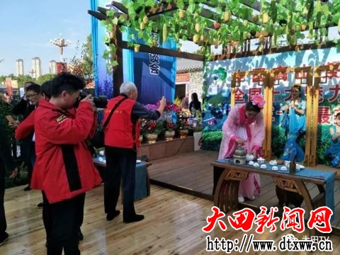 瓜果棚下,是大田茶藝表演隊的演出區域,一曲《月下問紅》,不僅吸引大家爭先拍攝,還再次留住了大家的腳步,駐足觀看。