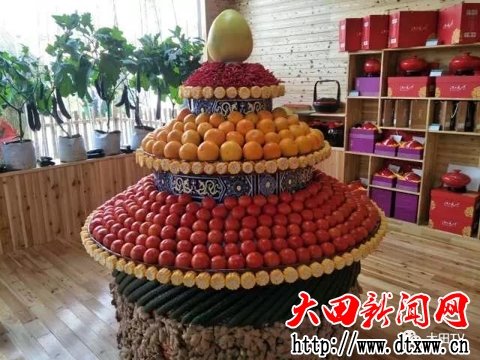特色農業展示廳里,最吸引人的是這座“豐收塔”寓意著五谷豐登、步步高,都是大田本土的有機生態果蔬。色彩鮮艷、造型獨特,吸引游客爭先拍照。