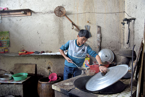 ![]() 陳偉積在忙家務 5月22日,這是個周末,去采訪的路上,我們碰到了正在水田里插秧的陳偉積,一看就是個勞動能手。滿腳是泥,瘦弱的他站在我們面前,幾分羞澀,不善語言。 頭上是紛紛揚揚的雨花,從幾株綠油油的柿樹、梨樹、楊梅樹下路過,又見到一樹花紅正艷的石榴,來到了一座八十年代建造,沒有裝修的破舊磚木土墻結構瓦房。這就是位于吳山鄉程堂村幫溪自然村陳偉積的家。 陳偉積,今年15歲,大田四中八年級(2)班班長。在陳偉積6歲那年,他父親上山干活,從樹上摔落,腦部重傷,花了40多萬元醫藥費,不到一年時間父親過世。因經受不住巨額債務的沉重思想負擔,母親離開了這個家,再也不曾見面。偶爾,母親會選擇在周末打電話回來,他特別思念母親,但不知道她在哪。 十年來,陳偉積與年邁的爺爺奶奶相依為命,過著極為清苦的生活。 記者來到陳偉積房間,這是一間粗坯房,數十年了,磚塊已風化,墻壁縫隙漏風;沒有衣櫥,衣服披在室內一根繩子上,破舊的蚊帳,塑料布遮擋著天花板。一張小小的方寸書桌擠在墻角,桌上放滿了書籍。就在這間破屋里,陳偉積立志苦讀,成為班級優秀學生,成績名列前茅。房間原本沒通電,今年初,團縣委掛鉤幫扶,幫忙安裝上了電燈。看著這燈盞,陳偉積露出了笑容。 陳偉積和奶奶一起在書堆、衣服堆里尋找曾經獲得過的無數獎狀,最終只找到了一張2015年學校授予的自強自立之星。家里粗糙的墻體無法找到一處可以成功地將紙質獎狀粘貼上去,引以為豪一番,獎狀放在舊衣物堆里,時間一長,便不知去向了。 從小,陳偉積陪著爺爺下地耕作,與奶奶一同上山拔兔草、采苦菜。一次奶奶暈倒在山上,8歲的陳偉積抱著奶奶哭,他不懂得如何是好,后來奶奶蘇醒過來。陳偉積說,爺爺奶奶身體不好,他害怕他們在山上出現個三長兩短。爺爺奶奶在地里忙活,陳偉積放學回來,就忙著生火煮飯,給豬和兔子喂食,做這些家務活,已成為一種日常生活習慣。 今年65歲的奶奶蔡春燕從田里采浮萍、野芋頭等豬食回來,她告訴記者,常年來,家里每個月只吃一兩次肉。陳偉積小時候經常對奶奶說很想吃一回肉,可是沒辦法,為還清給孩子治病時欠下的40多萬元債務,家里每年將養的兔子、雞和一頭豬全部賣了,甚至房屋邊上的幾株竹子長出來的筍也趁著圩日拿去賣了;奶奶常年上山采苦菜賣,目的也是為了家里增加收入,早點還清債務。前兩年,將一小片長成的林地也賣了。有時,周末回來,陳偉積與奶奶一起做一些草粿,拿到學校附近的街道去賣,貼補生活費。 只要家里一有點值錢的,全都賣了。好久沒食肉了,前兩天,奶奶從圩場買一斤1.5元錢的便宜冰凍豬皮,卻是膻臭味特別重,不吃也罷。含辛茹苦,就是為了還清債務,人家見死救命慷慨解囊,要知恩圖報,十年辛苦積攢還錢,已還掉了30多萬元,如今,還有8萬多元債務。蔡春燕奶奶說,再辛苦七、八年,陳偉積考上大學了,只要那時我們倆老人還能健康地活在世上,也許就可以把債務還清了。 從家里到學校得走40多分鐘,為了給家里省錢,陳偉積舍不得坐車,都是走路回家,走路返校。奶奶腰椎有傷,爺爺心臟不好,陳偉積怕他們心情不好影響健康,因此好好學習,他要給這個家帶去一點希望。他要讓爺爺和奶奶照顧好身體,欠下的債務等他長大了還清。可爺爺奶奶就是不依。爺爺奶奶總是早出晚歸,周末陳偉積回到家,看到爺爺奶奶換下的衣服未洗,就趁煮飯間隙,把他們的衣服給洗了,他從來不會把衣服帶回家給奶奶洗。清貧處境里,他們心疼愛護著彼此。 大田四中政教主任郭育華老師說,陳偉積是個平常普通的孩子,只是穿得比較樸素干凈,看不到特殊性、他的困難所在,很陽光的一個孩子。他是在一次家庭普查時,了解到了他。郭老師被感動了。這孩子是積極的團員志愿者,帶領班上20多位同學,每月每人節省三、兩塊錢生活費,利用午休時間,去慰問學校附近幾位空巢老人,幫助他們打掃衛生、洗衣服什么的。對于別的孩子這兩、三塊錢不算什么,而對陳偉積來說,卻是非常不容易。 班主任陳榮靖介紹,到了8年級,這孩子變化更大了,學校勞動、值日衛生、宿舍打掃,他都搶在前頭,責任意識非常強,他沒抱怨生活,而是時時心懷著感恩之情。對于低保家庭的孩子,上級有政策,這兩年,陳偉積在學校伙食有保障,可以像其他同學一樣餐餐吃到肉了。也許,他想通過這樣勞動付出的方式回報學校。 不知多少年了,他們沒有拍過一張全家福。記者帶了相機,給他們照相。他們彼此牽手握拳,相互偎依,他們永遠不辜負給予曾經幫助過的好心人,他們相信生活一定還有希望。只是,看到68歲的爺爺陳元漢還身著二十多年前遺留下來、如今已是異常少見的破舊粗布衣服,難以抑制住內心十分復雜的心情,不禁一陣酸楚,潸然淚下。 兩位白發老人和一個青澀少年,為還清一筆巨額醫療費債務,在痛失愛子、不知母親身在何方的十分艱難的處境里,節衣少食,在地里拼命勞作,努力追求物質的同時,讓維持生命的物質需要降低到極限,將替親人還債的一份沉重責任高高舉起,著實世間難得。 想起十年前,整個社會經濟水平還不高的情況下,一個普通農戶家庭,也唯有這樣的善良人家,才得以他人充分信任和同情,一下籌湊到40多萬元的救命錢。倆個老人的深沉之愛,為極力挽救原本起死回生無望的兒子生命,寧愿付出一生代價。而這種愛,在孫子身上得到很好延續,