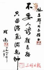 “不要人夸顏色好,只留清氣滿乾坤”。這是中共福建省委原書記項南同志書贈林志群的一幅墨寶,也是林志群同志高風亮節(jié)的真實寫照。作為一名紅色的后代,我有幸與林志群的兒媳池青,在大田郵電局一起共事了5年,也與他的兒子林抗相熟悉。池青是池沖的女兒。他們兩家的父輩都是黨的高級干部。但他們從來沒有高干子弟的架子,一如普通人家的子女,謙遜樸實,在工作上從來不搞高人一等的特權,始終與普通的干部職工打成一片,和睦相處。池青同志一直到退休還是一名普通的干部,沒有任何的職務,林抗同志也只是一名普通的科級干部,這與林志群同志良好的家風和言傳身教不無關系。這也與當下一些以權謀利、大搞裙帶關系、家天下,一人得道、雞犬升天的腐敗分子形成巨大的對比與反差。