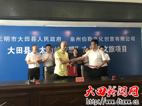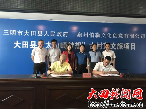 本網訊(通訊員:周榮歲)8月9日上午,大田縣“太山崎夢想”古村落文旅項目簽約儀式在均溪鎮政府舉行,縣委常委、副縣長賴偉平,縣政府黨組成員、均溪鎮黨委書記林永田出席簽約儀式。