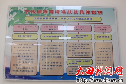石壁中心學校 為解決貧困大學生上學難的問題,2016年至2020年,寧化出臺了45810助學政策,對建檔立卡貧困家庭在校就讀的省內、省外高校大專生和本科生,分別給予每學年4000元、5000元和8000元、10000元的資金幫扶。目前,共有162名在校貧困大學生接受資助。