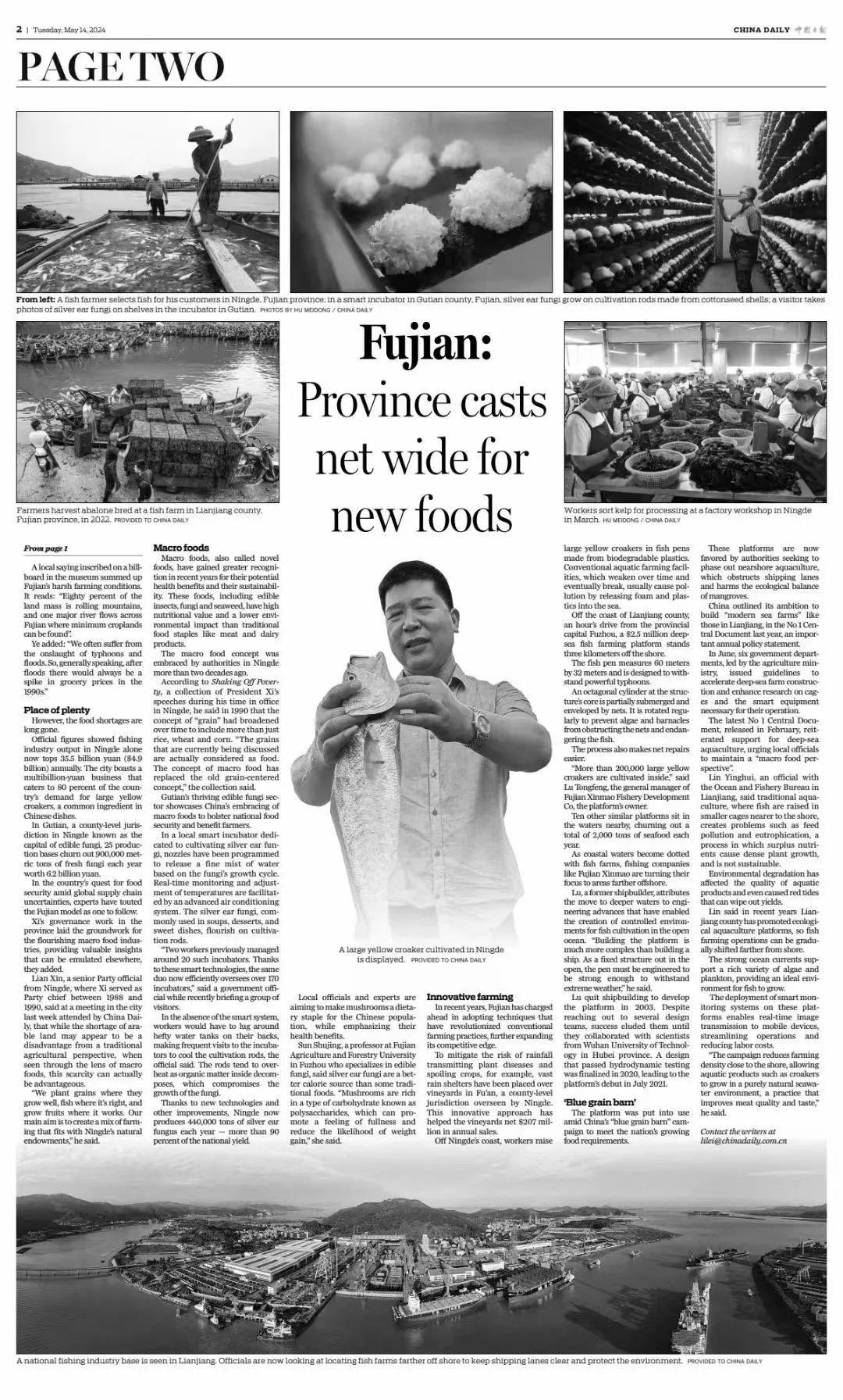 5月14日,《中國(guó)日?qǐng)?bào)》刊發(fā)《Fujian's innovations lead nation's quest for food security》