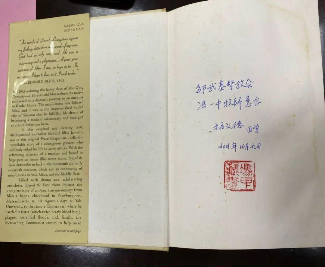 《邵武四十年》中的描寫 李艷/攝 福益華在邵武和鼓嶺的故事,流傳在他的家族內(nèi)。福益華的小兒子小愛德華通過信件、與福益華的交談,重構(gòu)了他的一生,寫成著作《Beyond The Stones Arches》。這本書的中文版《邵武四十年》,2015年出版問世。小愛德華在書的序中寫道:中國是我父親的生命。 2001年10月,在福益華離開邵武近70年后,他的孫女安娜一行人從美國來到邵武,探尋祖父在邵武的足跡,并將《邵武四十年》的英文原版書籍和一些照片贈送給馮一中。