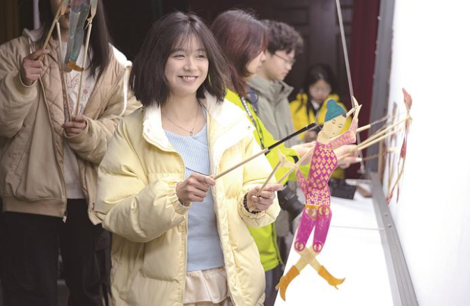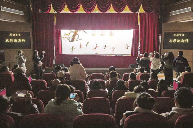 2月19日,在位于閬中市的四川王皮影藝術(shù)博物館,年輕觀眾受邀上臺體驗(yàn)表演皮影戲《迪斯科》。 除在國內(nèi)表演外,藝術(shù)團(tuán)先后在歐洲、北美洲、東南亞等地的30多個國家和地區(qū)演出。此外,王彪還與上海戲劇學(xué)院、西南民族大學(xué)、四川師范大學(xué)、成都大學(xué)等高校合作開設(shè)皮影戲相關(guān)課程,傳授相關(guān)知識。 2018年,王彪自籌資金在閬中建設(shè)“四川王皮影藝術(shù)博物館”,館中收藏有5萬余件皮影作品及數(shù)百本老劇本。該博物館全天候開放,年均演出數(shù)百場次,迄今已接待游客、研學(xué)學(xué)生數(shù)十萬人次,成為閬中旅游的一張靚麗名片。