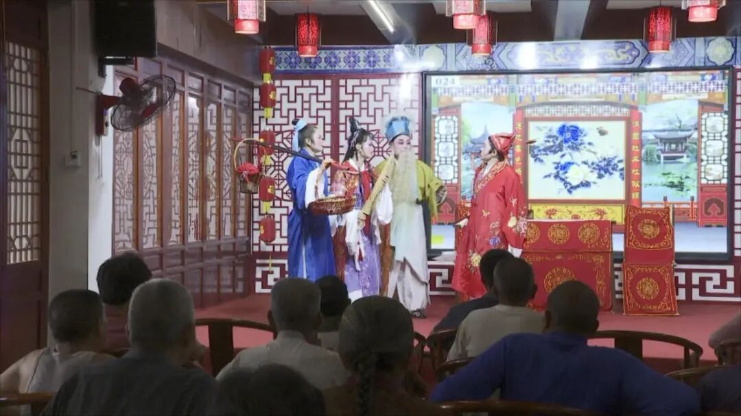 活動現場 由大田縣太華鎮萬湖村越劇團 表演的越劇《陳良借妻》正在上演 演員們唱腔婉轉、聲情并茂 表演時還融入了當地方言 帶給觀眾不一樣的感受 臺下觀眾看得津津有味 連連叫好