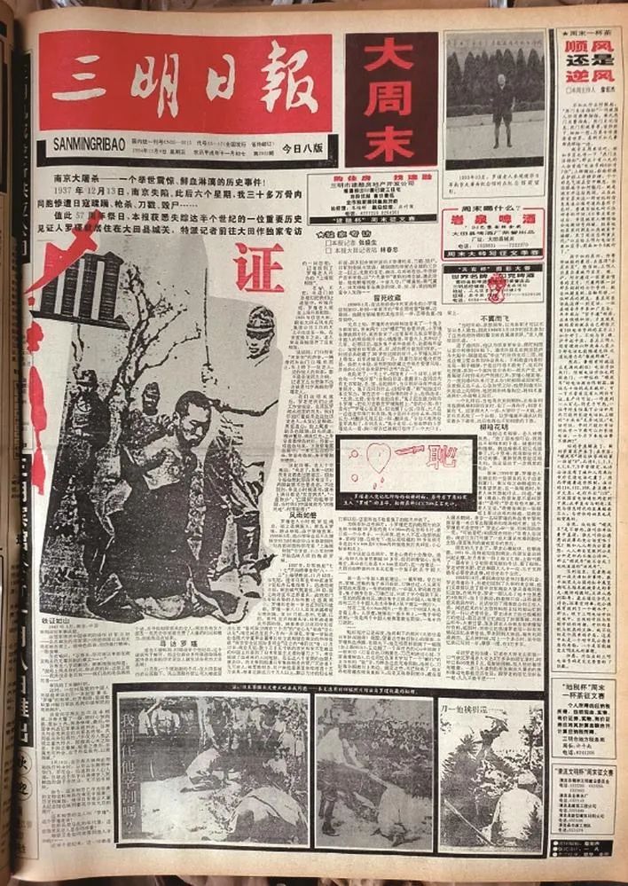 1994年12月9日《三明日報》刊登《血證》報道羅瑾的故事。 1993年,羅瑾第一次回到南京。此后,他先后多次應邀回南京確認密藏屠殺照片的遺址。1994年12月,南京大屠殺47周年祭日前夕,三明日報記者張盛生與大田縣委報道組林春忠對羅謹作了獨家專訪,并于1994年12月9日《三明日報》“大周末”上刊登了長篇通訊《血證》。 “1995年,在全國紀念抗日戰(zhàn)爭和世界反法西斯勝利50周年時,南京《金陵晚報》等各家報紙、電視臺記者來大田采訪羅瑾。”當時顏良重在大田縣委宣傳部工作,認識了羅瑾。那時羅瑾是縣政協(xié)委員,時年72歲,個子高大粗壯,四方臉,精神矍鑠,常穿深色格子襯衫,騎一輛紅色嘉陵摩托車,一口北方腔的普通話。 開展愛國教育 譴責日寇獸行 “羅瑾隨兒子羅祖英來到大田,羅祖英在縣石鳳水泥集團公司任職。”大田一中退休教師范立洋回憶,因為“上海照相館”能夠沖洗彩色照片,學校的許多活動照片都找羅瑾沖洗,所以接觸較多、常有交流。 “1994年的一天,我到上海照相館取照片,羅老漫不經心地把照片甩在柜臺上,嘴里念念叨叨。”范立洋不知何故,開玩笑說這樣的服務態(tài)度可不好。羅瑾告訴他,自己剛看了報道,對當年的侵華日軍獸行感到憤恨。 得知羅瑾的經歷,范立洋建議他到學校去開展愛國主義教育,并且寫回憶錄。在范立洋牽線搭橋下,大田職專、大田一中、大田五中、石牌中學、柯坑中學等中小學校,先后邀請羅瑾到校給師生作報告。