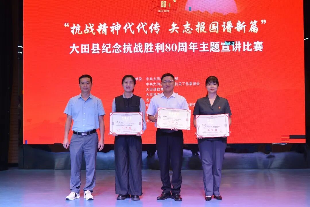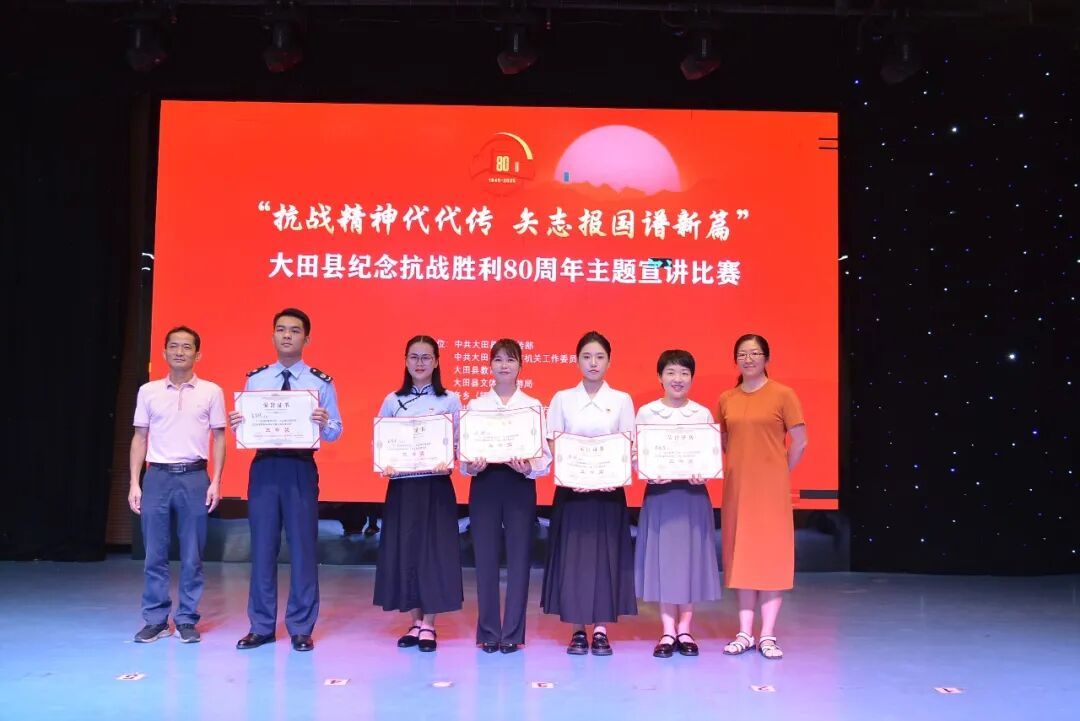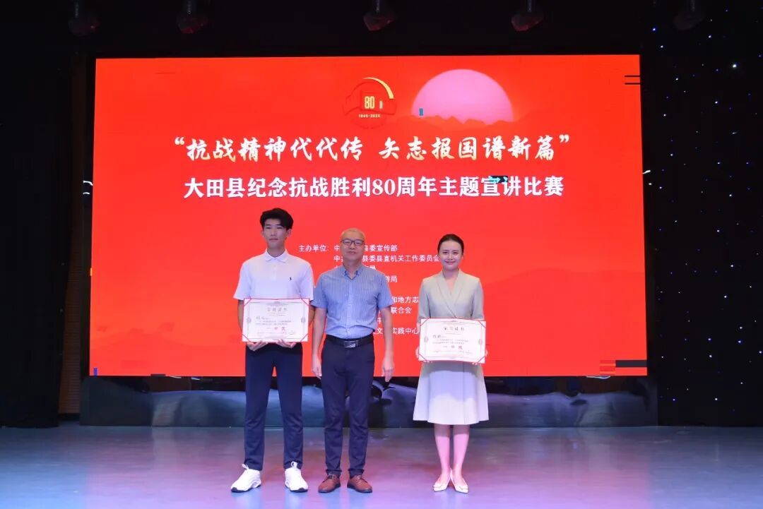 9月1日,大田縣“抗戰精神代代傳 矢志報國譜新篇”紀念抗戰勝利80周年主題宣講比賽決賽在縣融媒體中心一樓演播室舉行。經過初賽比拼,來自縣直機關工委選送的21名選手與各鄉(鎮)黨委推選的18名選手中,共有10名選手脫穎而出晉級決賽,并展開最終角逐。